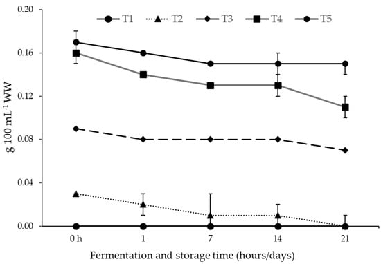 3.3. Microbial Growth, pH, and Acidity during Storage Time