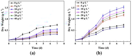 - Ma, D.D.; Li, Y.F. Heterotrophic culture of Chlorella sp. and Dunaliella salina using alginate oligosaccharide and its growth promoting mechanism. Period. Ocean. Univ. China 2020, 50, 40–45. [Google Scholar] [CrossRef]