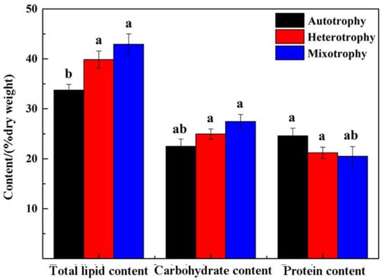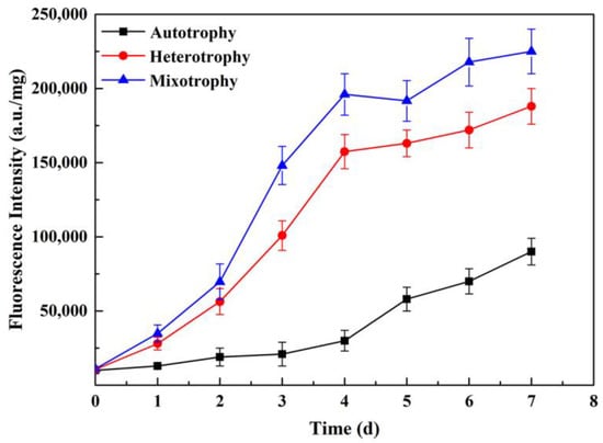 Gao, Y.; Li, Y.; Yang, Y.; Feng, J.; Ji, L.; Xie, S. Effects of Trophic Modes on the Lipid Accumulation of Parachlorella kessleri TY. Fermentation 2023, 9, 891. https://doi.org/10.3390/fermentation9100891