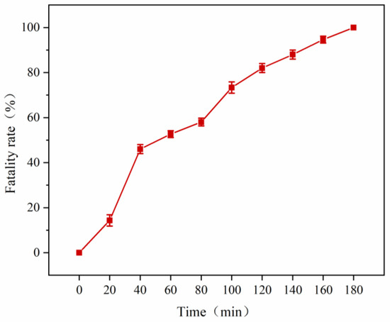 Atmospheric pressure and room temperature plasma (ARTP) mutagenesis mortality curve. A time of 160 s was selected as the most effective mutagenesis time.