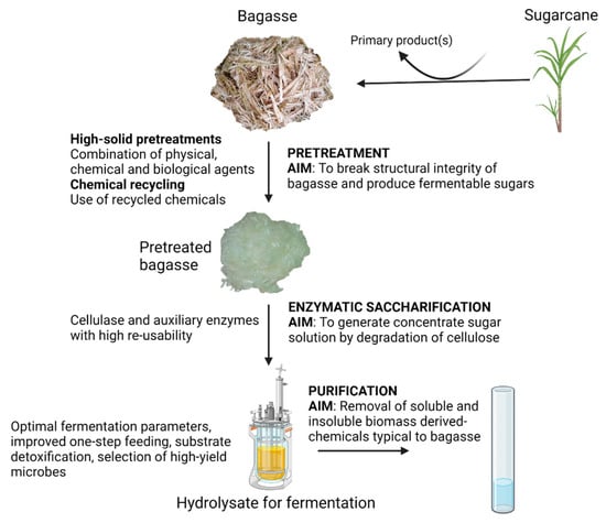 - Baral, P.; Munagala, M.; Shastri, Y.; Kumar, V.; Agrawal, D. Cost reduction approaches for fermentable sugar production from sugarcane bagasse and its impact on techno-economics and the environment. Cellulose 2021, 28, 6305–6322. [Google Scholar] [CrossRef]