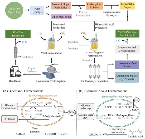 3.4. Case Study 3: Processing Algal Carbohydrates to Bioethanol and Bio-Succinic Acid
