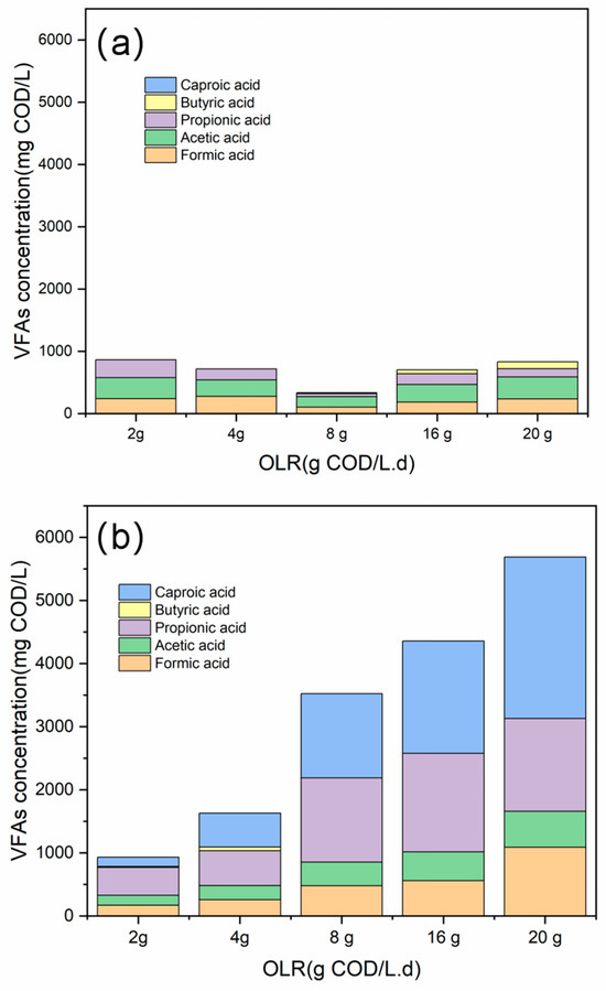 - Magdalena, J.A.; Greses, S.; Gonzalez-Fernandez, C. Impact of Organic Loading Rate in Volatile Fatty Acids Production and Population Dynamics Using Microalgae Biomass as Substrate. Sci. Rep. 2019, 9, 18374. [Google Scholar] [CrossRef]