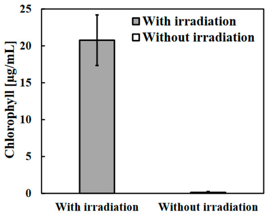 The amount of chlorophyll after 13-day anaerobic digestion in the samples of WSS with or without photo-irradiation. Error bars represent standard errors (n = 3).