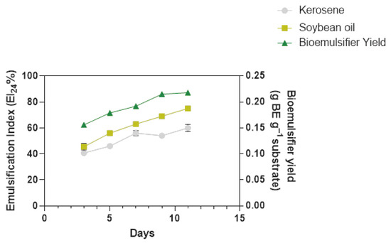 - Peele, K.A.; Kodali, V.P. Emulsifying activity of a biosurfactant produced by a marine bacterium. 3 Biotech 2016, 6, 3247. [Google Scholar] [CrossRef]
