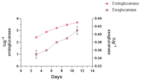 - Marques, N.P.; de Cassia Pereira, J.; Gomes, E.; da Silva, R.; Araújo, A.R.; Ferreira, H.; Rodrigues, A.; Dussán, K.J.; Bocchini, D.A. Cellulases and xylanases production by endophytic fungi by solid state fermentation using lignocellulosic substrates and enzymatic saccharification of pretreated sugarcane bagasse. Ind. Crops Prod. 2018, 122, 66–75. [Google Scholar] [CrossRef]