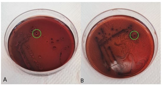 The hemolytic activity of the isolates was determined using the method described by Sui et al. [], with minor modifications. Bacterial cultures in the exponential growth phase were streaked onto Columbia blood agar plates (Merck, Darmstadt, Germany) enriched with 5% sheep blood. The plates were incubated anaerobically for 48 h at 37 °C. Thereafter, the hemolysis zones were observed.