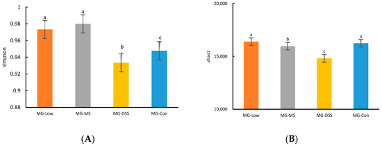 Total microbial genomic DNA samples were extracted using the OMEGA Mag-Bind Soil DNA Kit (M5635-02; Omega Bio-Tek, Norcross, GA, USA) according to the manufacturer’s instructions and stored at −20 °C for further analysis. The quantity and quality of the extracted DNA were assessed using a Qubit™ 4 Fluorometer (Invitrogen, Waltham, MA, USA) and agarose gel electrophoresis, respectively. The microbial DNA was then processed to construct metagenome shotgun sequencing libraries with 400-bp insert sizes using the Illumina TruSeq Nano DNA LT Library Preparation Kit. Each library was sequenced on the Illumina NovaSeq platform (Illumina, San Diego, California, USA), employing a PE150 strategy. The resulting sequencing data were analyzed to study the composition and functional changes of the gut microbiota among different groups.