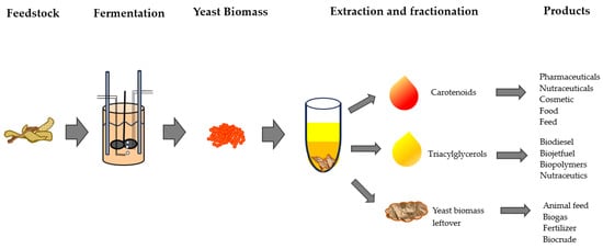Lopes da Silva, T.; Fontes, A.; Reis, A.; Siva, C.; Gírio, F. Oleaginous Yeast Biorefinery: Feedstocks, Processes, Techniques, Bioproducts. Fermentation 2023, 9, 1013. https://doi.org/10.3390/fermentation9121013