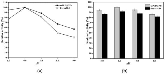 2.5. Enzymatic Properties of saPLD@NFs