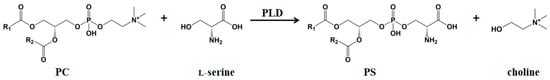 - Liu, Y.; Huang, L.; Fu, Y.; Zheng, D.; Ma, J.; Li, Y.; Xu, Z.; Lu, F. A novel process for phosphatidylserine production using a Pichia pastoris whole-cell biocatalyst with overexpression of phospholipase D from Streptomyces halstedii in a purely aqueous system. Food Chem. 2019, 274, 535–542. [Google Scholar] [CrossRef] [PubMed]