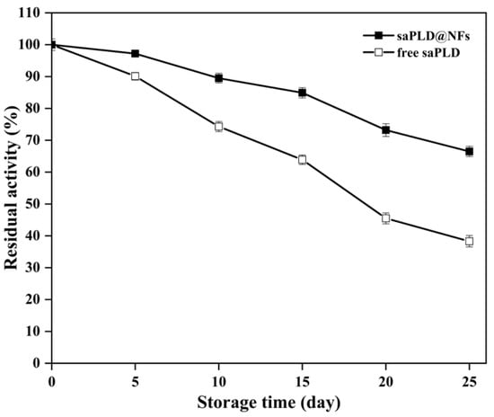 2.7. Storage Stability of saPLD@NFs