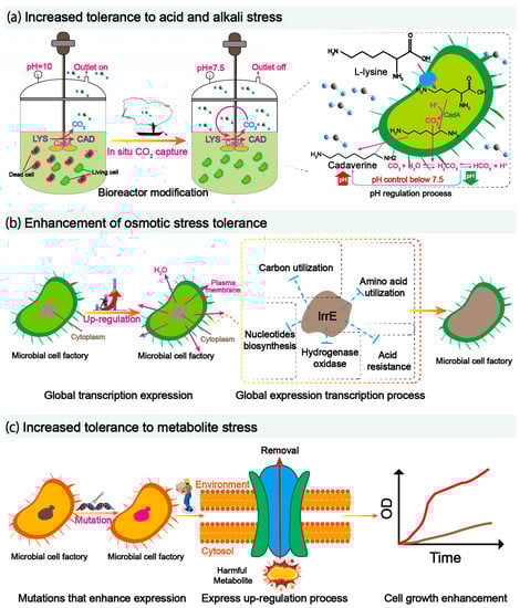- Qi, Y.; Liu, H.; Chen, X.; Liu, L. Engineering microbial membranes to increase stress tolerance of industrial strains. Metab. Eng. 2018, 53, 24–34. [Google Scholar] [CrossRef]