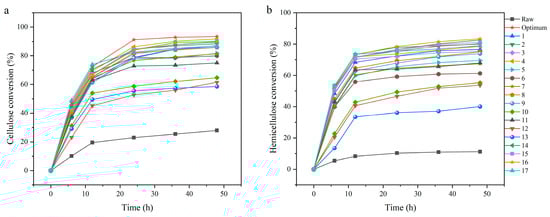 | Entry | X1 c | X2 d | X3 e | Solid Remain % | Cellulose % | Hemicellulose % | Lignin % | |||