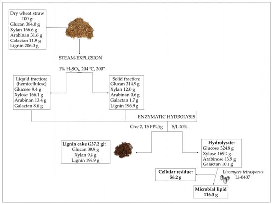 Caporusso, A.; De Bari, I.; Giuliano, A.; Liuzzi, F.; Albergo, R.; Pietrafesa, R.; Siesto, G.; Romanelli, A.; Braccio, G.; Capece, A. Optimization of Wheat Straw Conversion into Microbial Lipids by Lipomyces tetrasporus DSM 70314 from Bench to Pilot Scale. Fermentation 2023, 9, 180. https://doi.org/10.3390/fermentation9020180