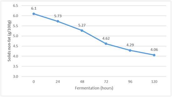 The content of non-fat solids during Istrian albumin cheese whey fermentation using yeast Kluyveromyces marxianus subsp. marxianus.