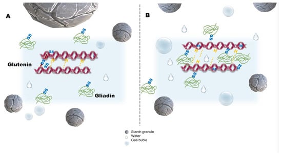 - Thiele, C.; Grassl, S.; Gänzle, M. Gluten Hydrolysis and Depolymerization during Sourdough Fermentation. J. Agric. Food Chem. 2004, 52, 1307–1314. [Google Scholar] [CrossRef]