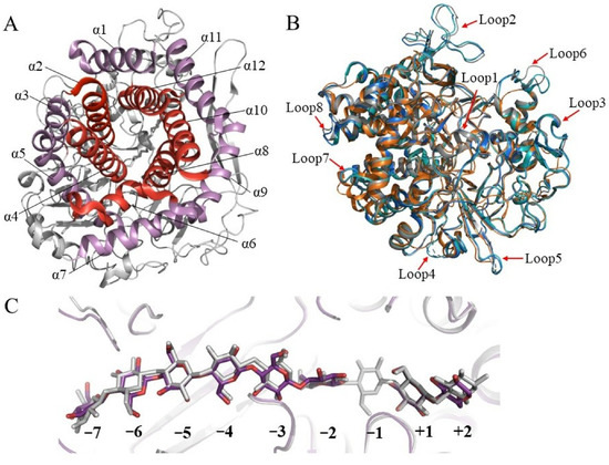 - Brunecky, R.; Alahuhta, M.; Sammond, D.W.; Xu, Q.; Chen, M.; Wilson, D.B.; Brady, J.W.; Himmel, M.E.; Bomble, Y.J.; Lunin, V.V. Natural diversity of glycoside hydrolase family 48 exoglucanases: Insights from structure. Biotechnol. Biofuels 2017, 10, 274. [Google Scholar] [CrossRef]