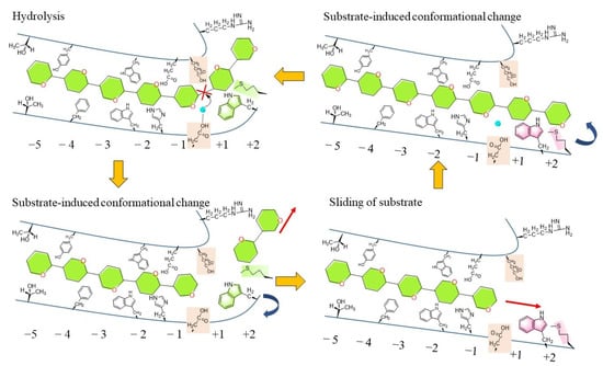 - Kurasin, M.; Väljamäe, P. Processivity of cellobiohydrolases is limited by the substrate. J. Biol. Chem. 2011, 286, 169–177. [Google Scholar] [CrossRef]