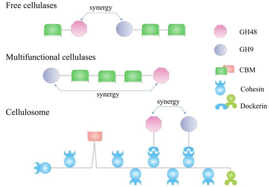 - Artzi, L.; Bayer, E.A.; Moraïs, S. Cellulosomes: Bacterial nanomachines for dismantling plant polysaccharides. Nat. Rev. Microbiol. 2017, 15, 83–95. [Google Scholar] [CrossRef]