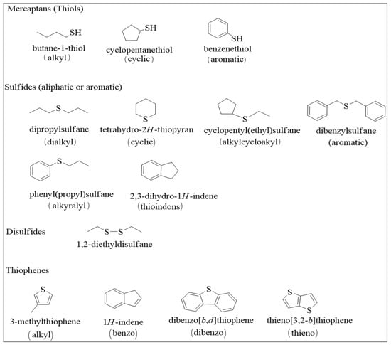 Figure 2. Different types of sulfur-containing organic compounds identified in crude oil.
