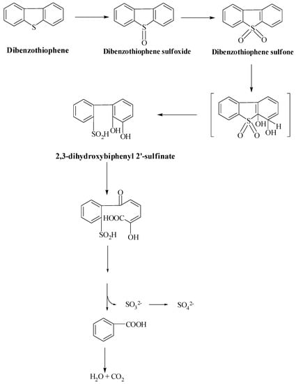 165. Gilbert, S.C.; Morton, J.; Buchanan, S.; Oldfield, C.; McRoberts, A. Isolation of a unique benzothiophene-desulphurizing bacterium, Gordona sp. strain 213E (NCIMB 40816), and characterization of the desulphurization pathway. Microbiology 1998, 144, 2545–2553. [Google Scholar] [CrossRef]