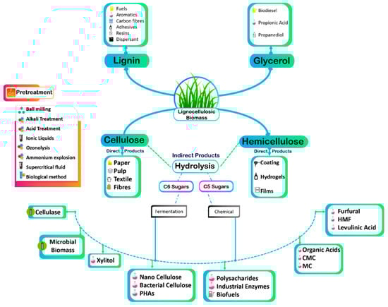 - Haldar, D.; Purkait, M.K. Lignocellulosic Conversion into Value-Added Products: A Review. Process. Biochem. 2020, 89, 110–133. [Google Scholar] [CrossRef]