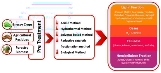 - Bhutto, A.W.; Qureshi, K.; Harijan, K.; Abro, R.; Abbas, T.; Bazmi, A.A.; Karim, S.; Yu, G. Insight into Progress in Pre-Treatment of Lignocellulosic Biomass. Energy 2017, 122, 724–745. [Google Scholar] [CrossRef]