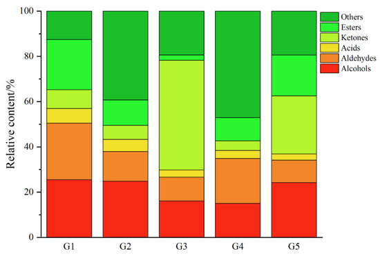 3.4. Changes in VFCs in Pickled BLS under Different Salt Concentrations