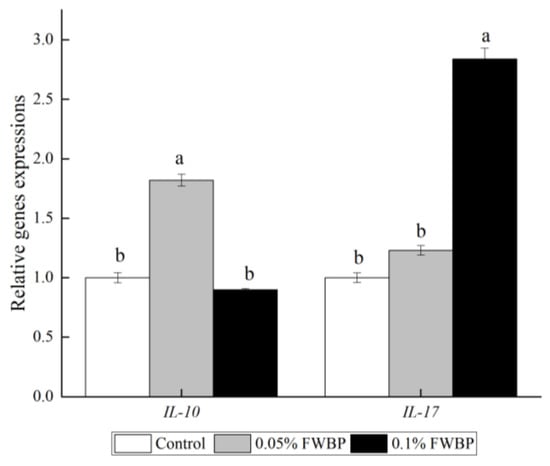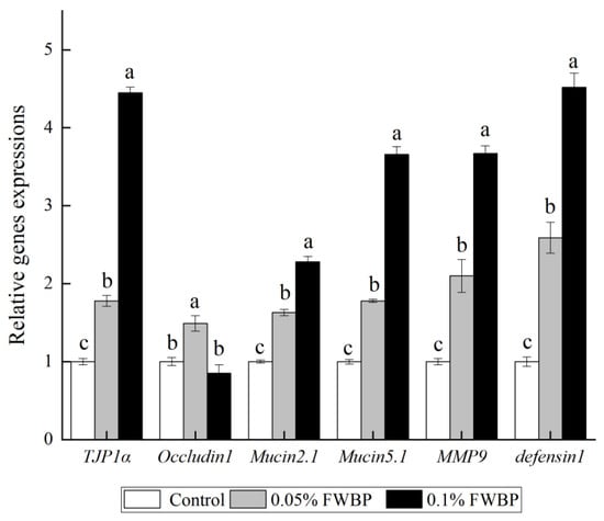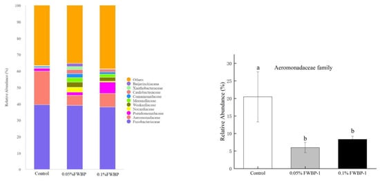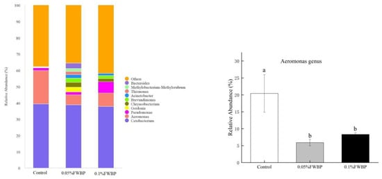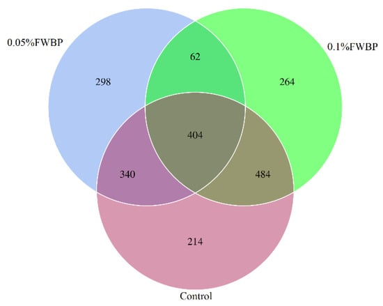 3.2. Experiment 2 Effects of FWBP on Immune Activity, Intestinal Morphology and Gut Microbiota of Zebrafish
