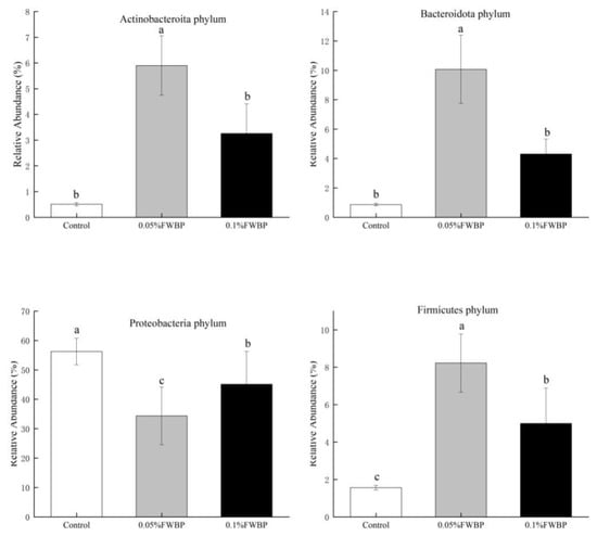 3.2.3. Effect of FWBP on Gut Microbiota