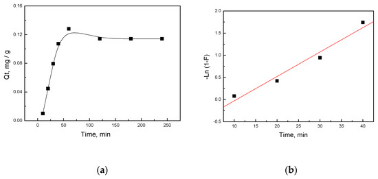 Adsorption kinetics of mercury on biochar: (a) The dynamic adsorption; (b) The kinetic adsorption plots.