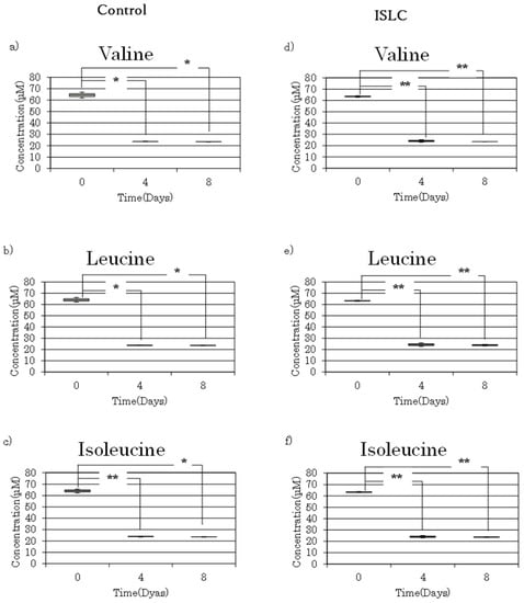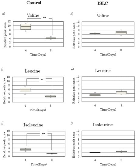 3.3. Analysis of BCAAs in Cell Culture Medium
