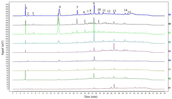 HPLC fingerprint analysis of SHFs from strains S1–S9.