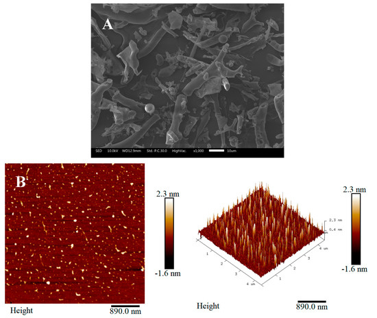 (A) Scanning electron micrographs of the IC-FWBP; (B) atomic force microcopy images of the IC-FWBP.