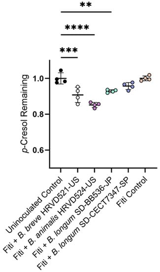 3.5. Yogurt Supplemented with Probiotic Bifidobacteria Reduce p-Cresol in a Simulated Colon Environment