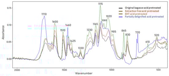 3.4. Dioxane Extracted Material—FTIR Analysis