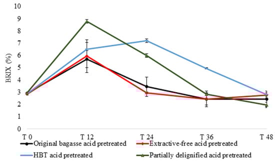 - Neves, P.V.; Pitarelo, A.P.; Ramos, L.P. Production of cellulosic ethanol from sugarcane bagasse by steam explosion: Effect of extractives content, acid catalysis and different fermentation technologies. Bioresour. Technol. 2016, 208, 184–194. [Google Scholar] [CrossRef]