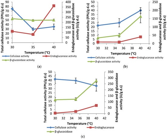 3.3. Effect of Temperature on the Production of the Cellulase Enzyme System