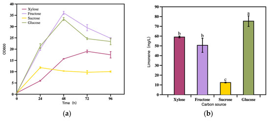 3.2.1. The Effect of Carbon Source on Limonene Production