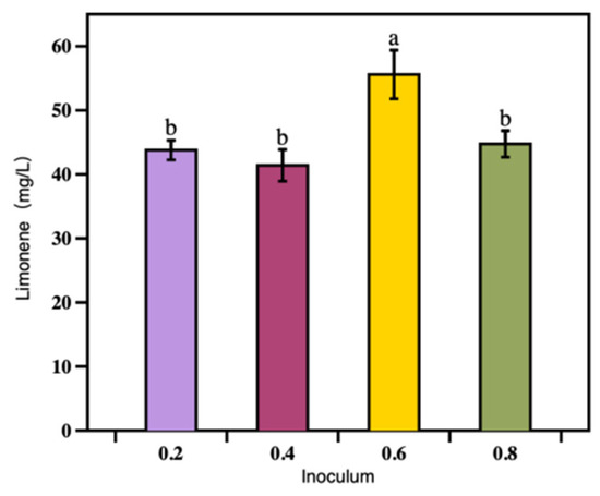 3.2.2. The Effect of Initial Cell Density on Limonene Production