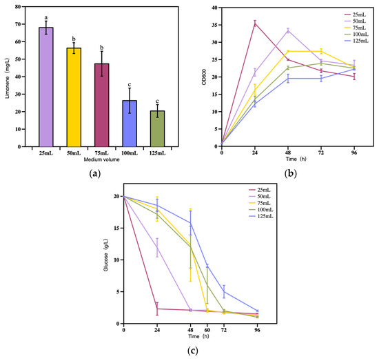 3.2.3. The Effect of Working Volume on Limonene Production