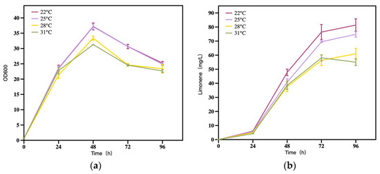 3.2.4. The Effect of Temperature on Limonene Production