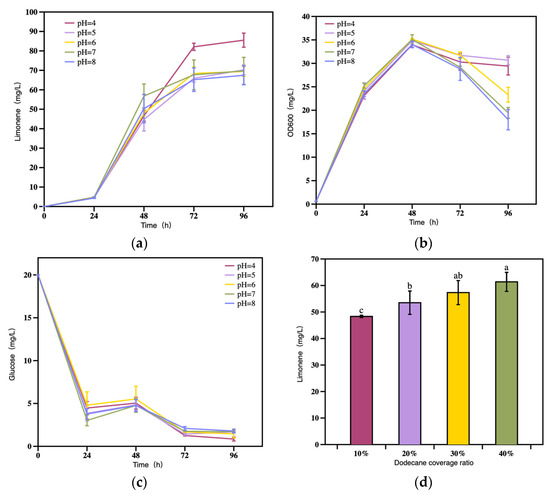 3.2.5. The Effect of Initial pH on Limonene Production