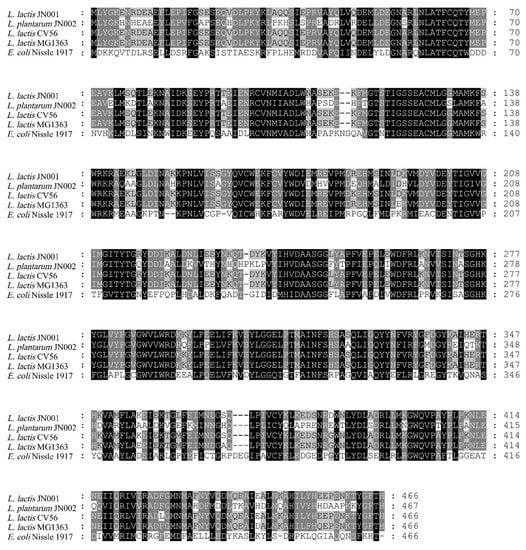 - Nomura, M.; Nakajima, I.; Fujita, Y.; Kobayashi, M.; Kimoto, H.; Suzuki, I.; Aso, H. Lactococcus lactis contains only one glutamate decarboxylase gene. Microbiology 1999, 145, 1375–1380. [Google Scholar] [CrossRef] [PubMed]