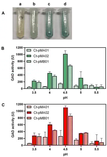 - De Biase, D.; Pennacchietti, E. Glutamate decarboxylase-dependent acid resistance in orally acquired bacteria: Function, distribution and biomedical implications of the gadBC operon. Mol. Microbiol. 2012, 86, 770–786. [Google Scholar] [CrossRef]