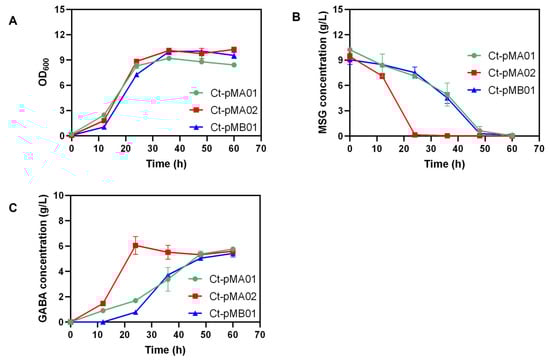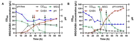 3.5. Improvement of GABA Biosynthesis by Two-Stage Strategy Using Glutamate Acid (L-Glu) as Substrate
