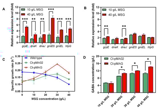 3.3. Enhanced MSG Tolerance and GABA Production by Class I Heat-Shock Protein GroESL Overexpression