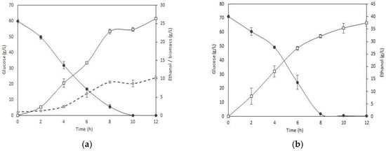 SH hydrolysate was fermented in a batch mode at a constant temperature of 30 °C and stirring at 150 rpm. Previous yeast adaptation to the SH hydrolysate was not required. Neither nitrogen source nor additional nutrients (salts or vitamins) were added to the fermentation media. For comparative purposes, the yeast fermentative performance was also evaluated in a synthetic medium containing D-glucose 60 g/L and commercial yeast extract 5 g/L under the same experimental conditions. Duplicate fermentation experiments were conducted for each medium. Finally, the performance of yeasts was evaluated using several parameters defined in a previous work [].