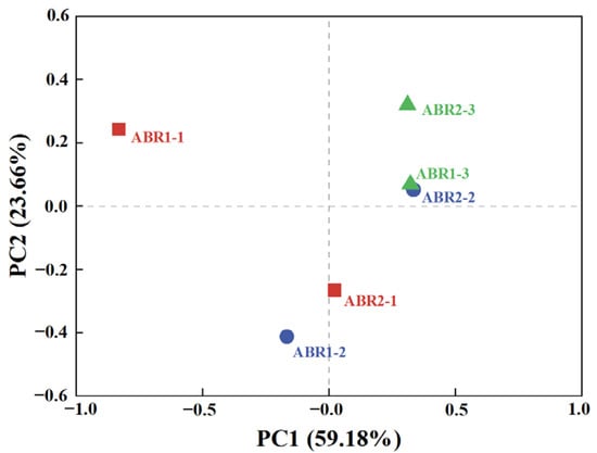 Principal component analysis (PCA) of microbial communities in the two ABRs.